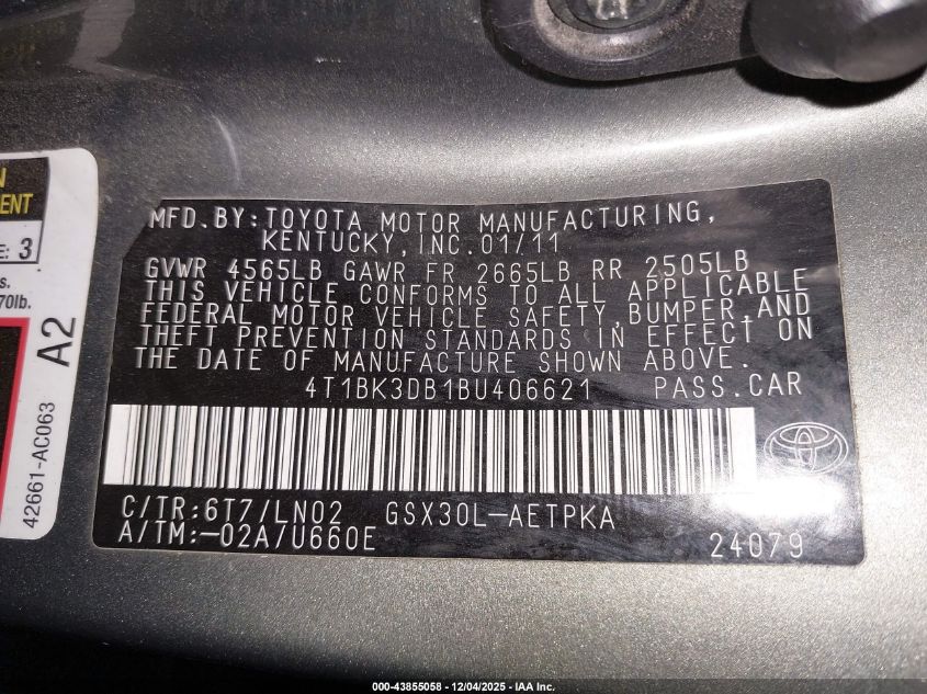 2011 TOYOTA AVALON 2011 року Бензин, 3.5, Передній привід, vin - 4T1BK3DB1BU406621 з США