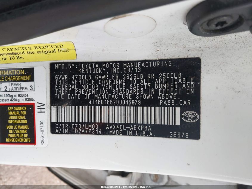 2013 TOYOTA AVALON 2013 року Гібрид, 2.5, Передній привід, vin - 4T1BD1EB2DU015879 з США
