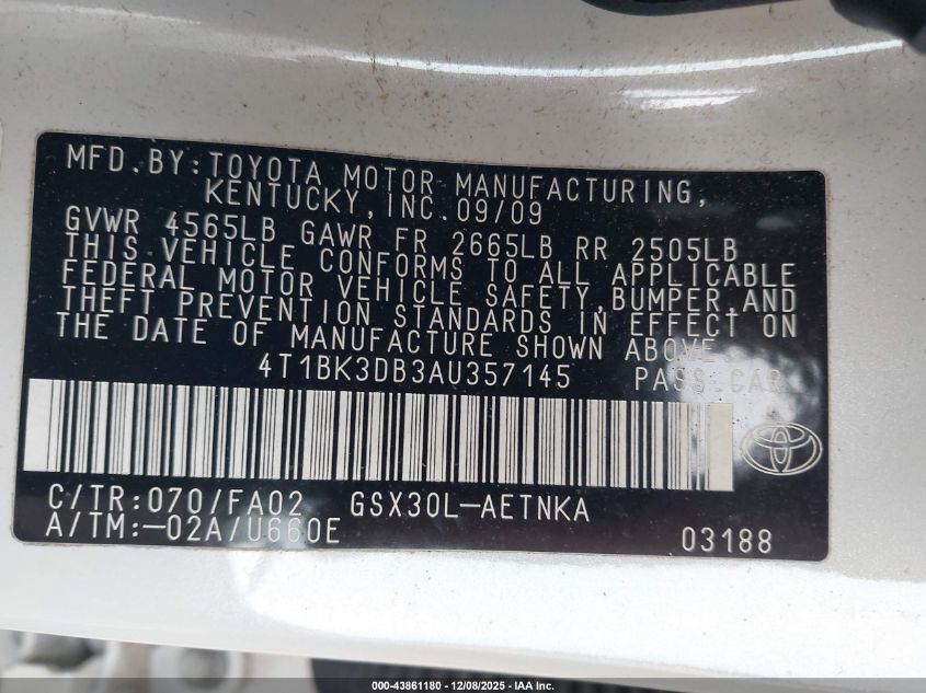 2010 TOYOTA AVALON 2010 року Бензин, 3.5, Передній привід, vin - 4T1BK3DB3AU357145 з США