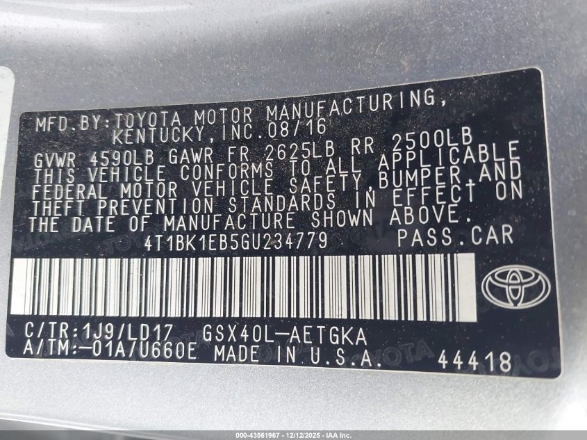 2016 TOYOTA AVALON 2016 року Бензин, 3.5, Передній привід, vin - 4T1BK1EB5GU234779 з США