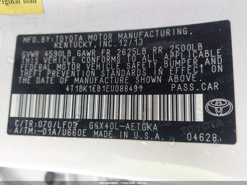 2014 TOYOTA AVALON 2014 року Бензин, 3.5, Передній привід, vin - 4T1BK1EB1EU088491 з США