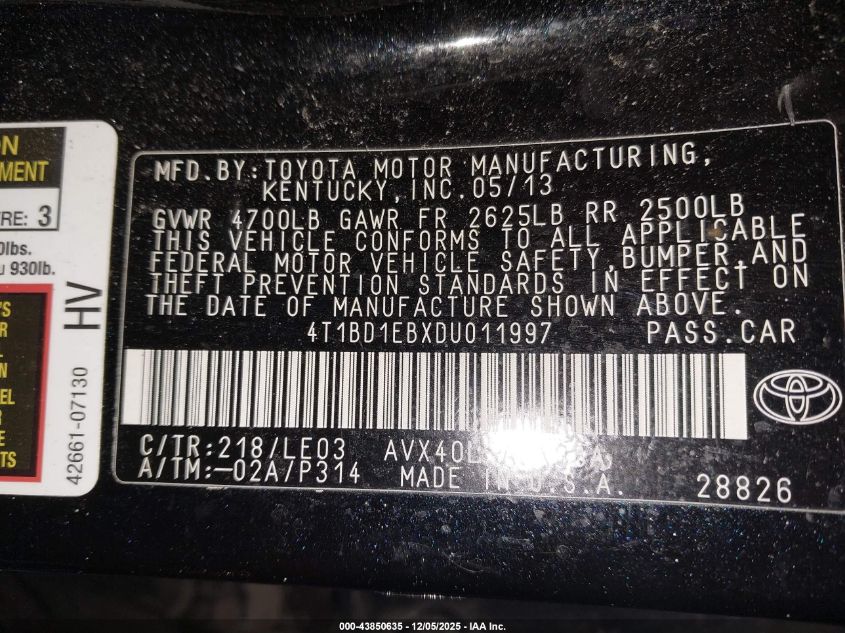 2013 TOYOTA AVALON 2013 року Гібрид, 2.5, Передній привід, vin - 4T1BD1EBXDU011997 з США