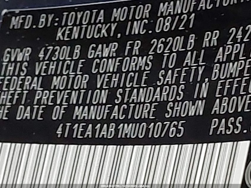 2021 TOYOTA AVALON 2021 року Гібрид, 2.5, Передній привід, vin - 4T1EA1AB1MU010765 з США