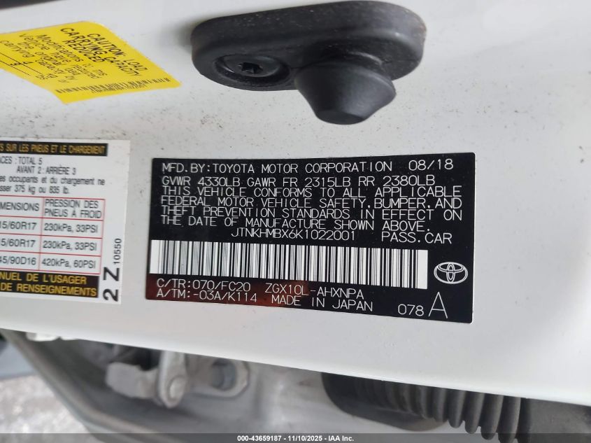 Колір БілийЦиліндри 4Привід Передній привідVIN JTNKHMBX6K1022001Стан Заводиться та їде (перевірено)Ушкодження Передня або задня AutoRIA