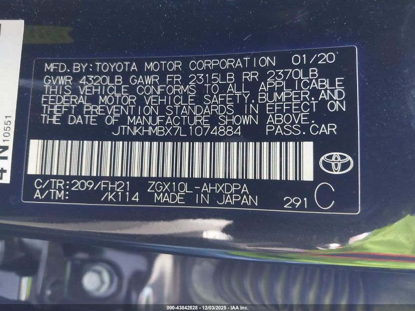 2020 TOYOTA C-HR 2020 року Бензин, 2.0, Передній привід, vin - JTNKHMBX7L1074884 з США