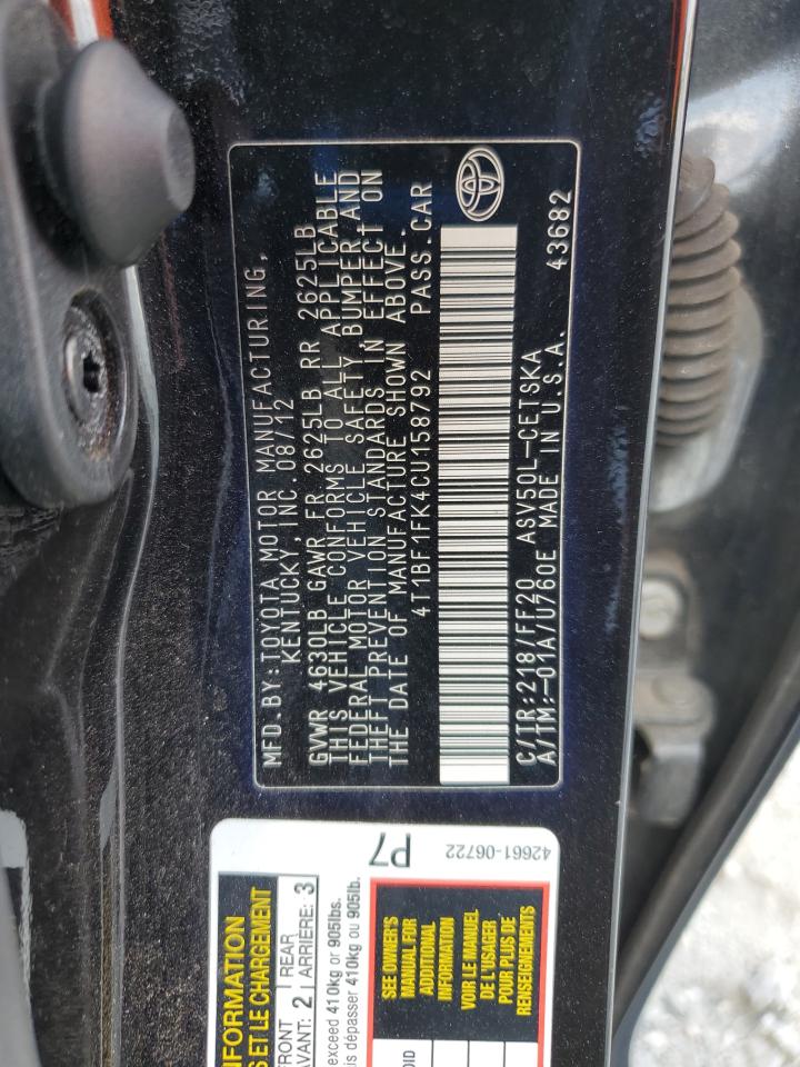 2012 TOYOTA CAMRY 2012 року Бензин, 2.5, , vin - 4T1BF1FK4CU158792 з США
