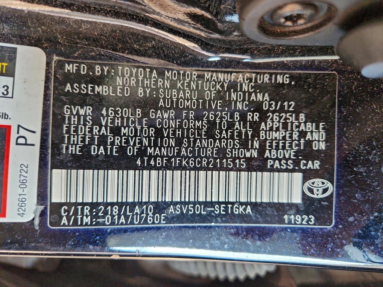 Колір ЧорнийЦиліндри 4VIN 4T4BF1FK6CR211515Стан Заводиться та їде (перевірено)Ушкодження Передня або задня AutoRIA