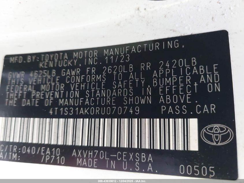 2024 TOYOTA CAMRY HYBRID 2024 року Гібрид, 2.5, Передній привід, vin - 4T1S31AK0RU070749 з США
