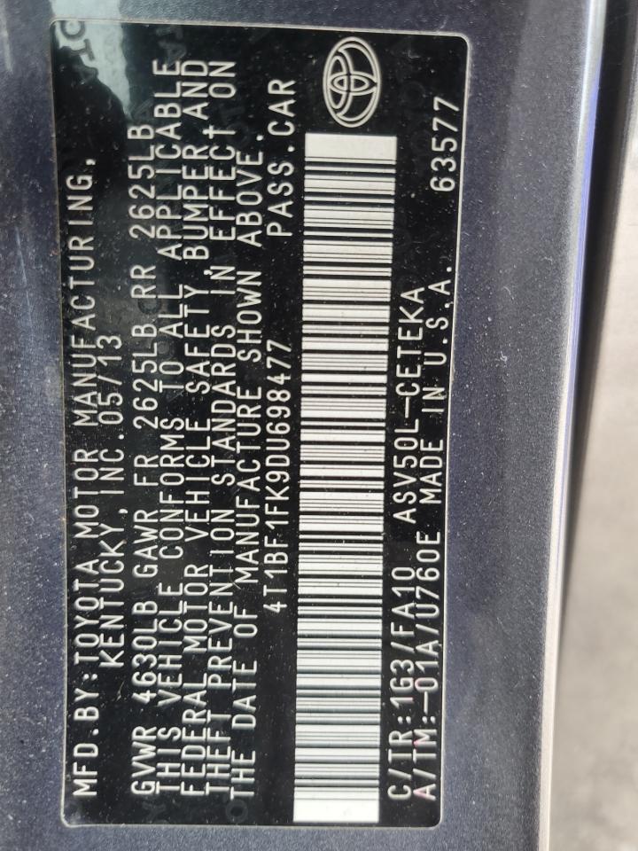 Колір СірийЦиліндри 4VIN 4T1BF1FK9DU698477Стан Заводиться та їде (перевірено)Ушкодження Задня AutoRIA
