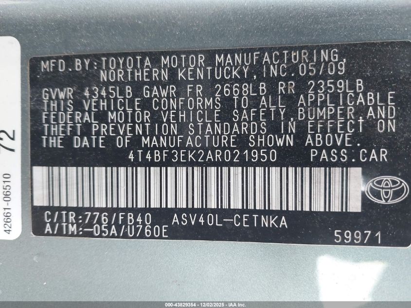 Колір СинійЦиліндри 4Привід Передній привідVIN 4T4BF3EK2AR021950Стан СтаціонарноУшкодження Задня ліва AutoRIA