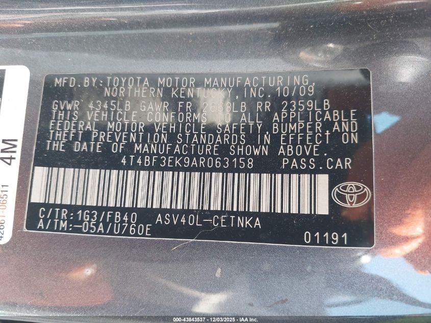 2010 TOYOTA CAMRY 2010 року Бензин, 2.5, Передній привід, vin - 4T4BF3EK9AR063158 з США