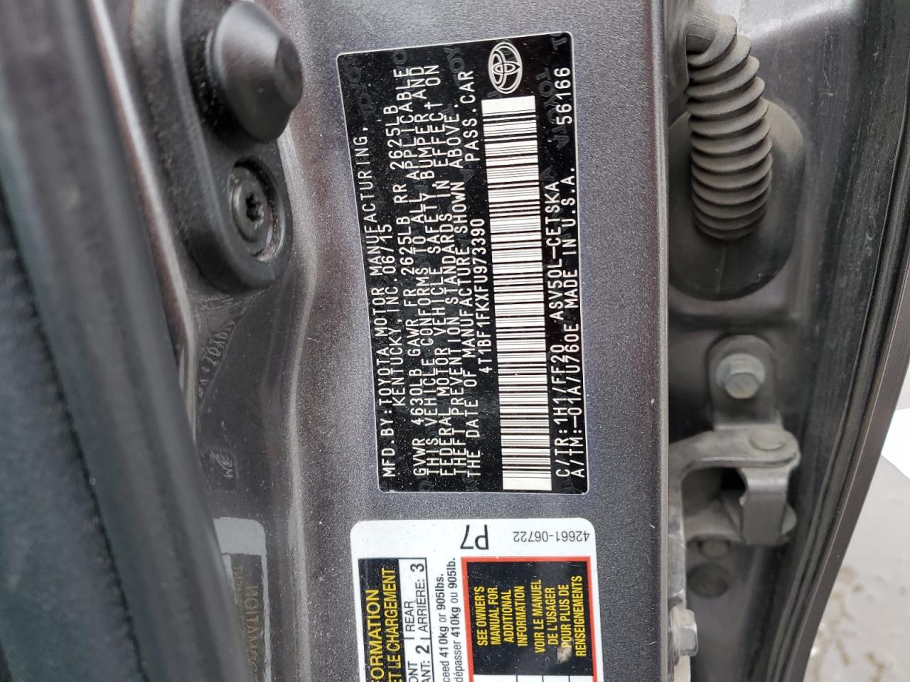Колір СірийЦиліндри 4VIN 4T1BF1FKXFU973390Стан Заводиться та їде (перевірено)Ушкодження Передня або задня AutoRIA