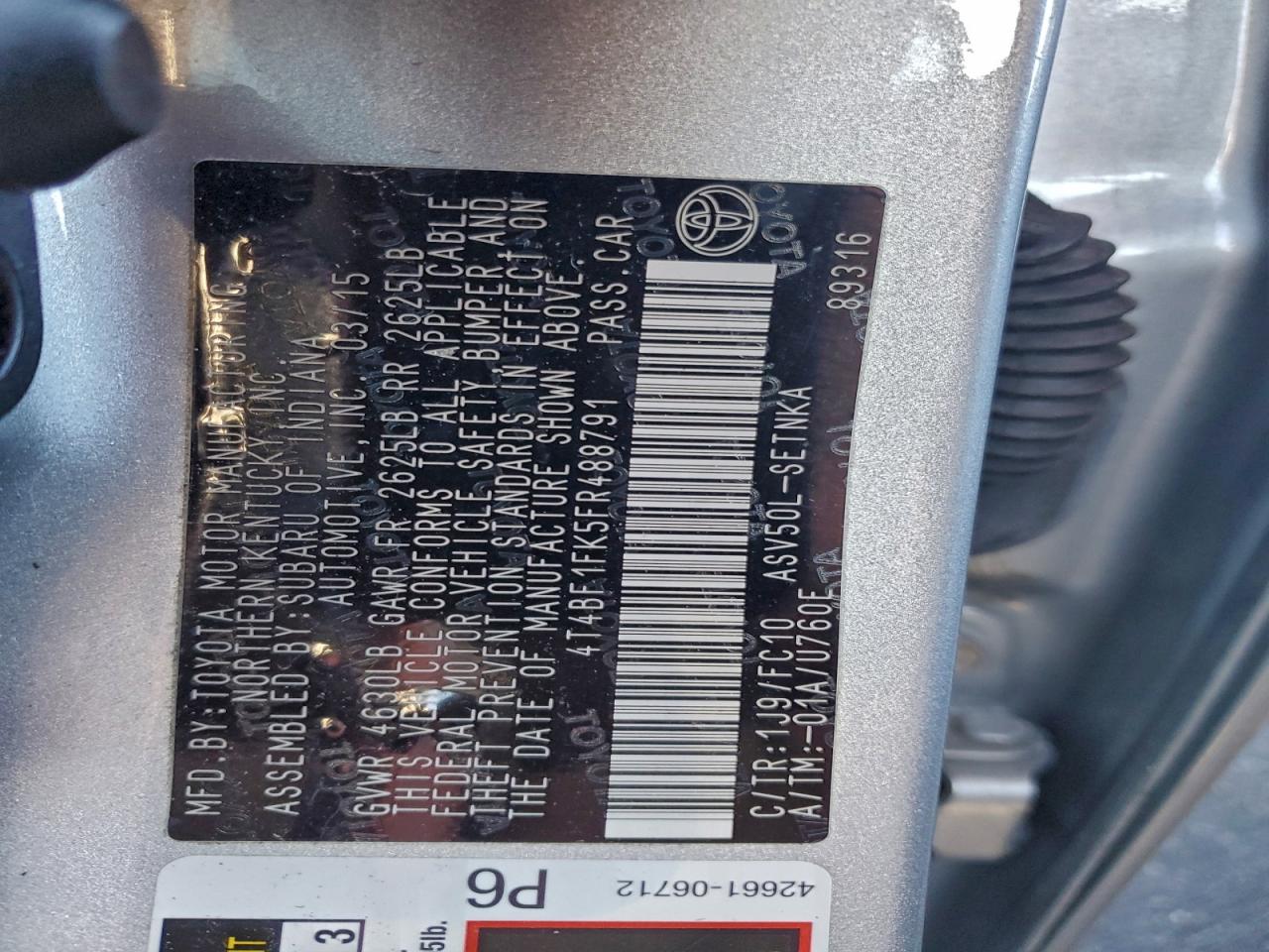 Колір СрібнийЦиліндри 4VIN 4T4BF1FK5FR488791Стан Заводиться та їде (перевірено)Ушкодження Задня AutoRIA