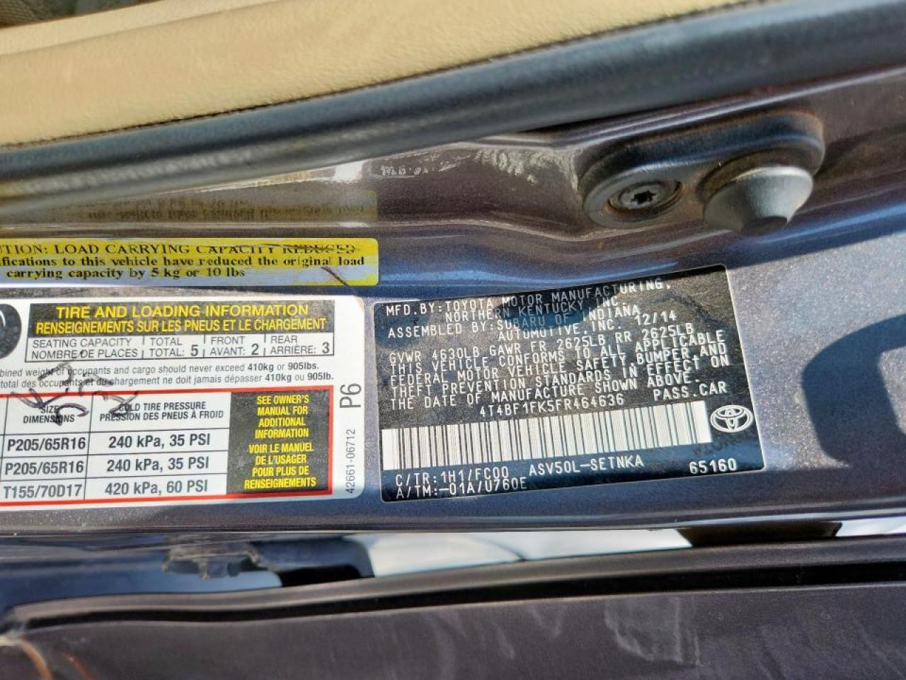Колір СірийЦиліндри 4VIN 4T4BF1FK5FR464636Стан Заводиться та їде (перевірено)Ушкодження Передня або задня AutoRIA