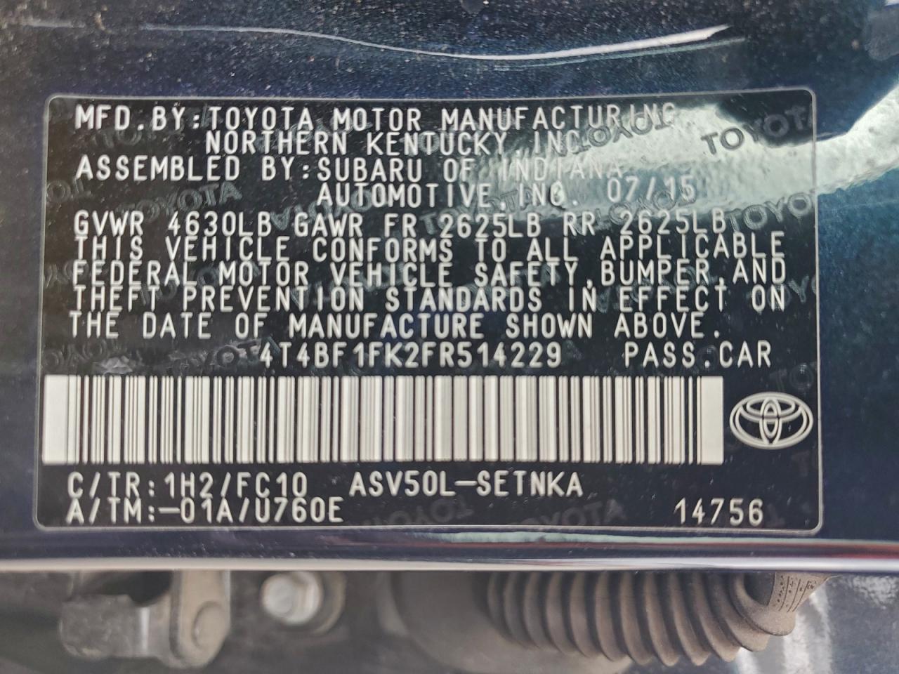 2015 TOYOTA CAMRY 2015 року Бензин, 2.5, , vin - 4T4BF1FK2FR514229 з США