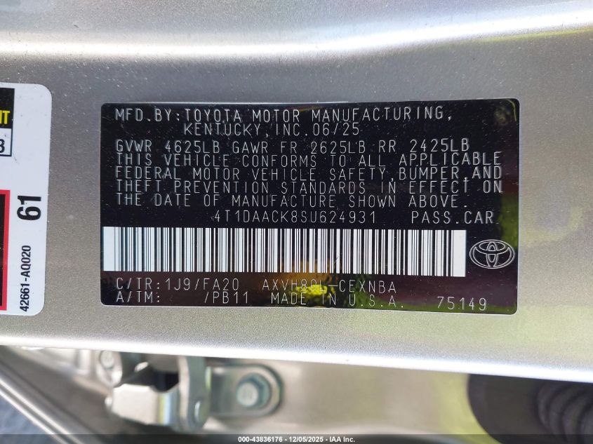 2025 TOYOTA CAMRY 2025 року Гібрид, 2.5, Передній привід, vin - 4T1DAACK8SU624931 з США