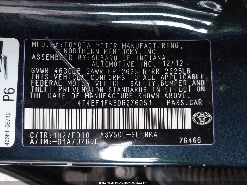 2013 TOYOTA CAMRY 2013 року Бензин, 2.5, Передній привід, vin - 4T4BF1FK5DR276051 з США