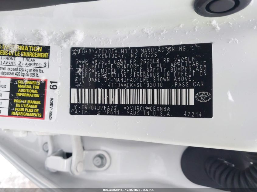 2025 TOYOTA CAMRY 2025 року Гібрид, 2.5, Передній привід, vin - 4T1DAACK4SU183010 з США