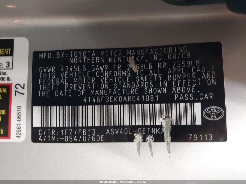 2010 TOYOTA CAMRY 2010 року Бензин, 2.5, Передній привід, vin - 4T4BF3EK0AR041081 з США
