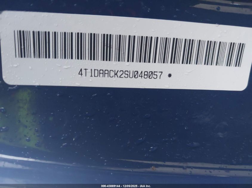 Колір СинійЦиліндри 4Привід Передній привідVIN 4T1DAACK2SU048057Стан Заводиться та їде (перевірено)Ушкодження Передня або задня AutoRIA
