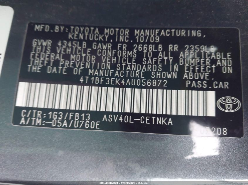 2010 TOYOTA CAMRY 2010 року Бензин, 2.5, Передній привід, vin - 4T1BF3EK4AU056872 з США