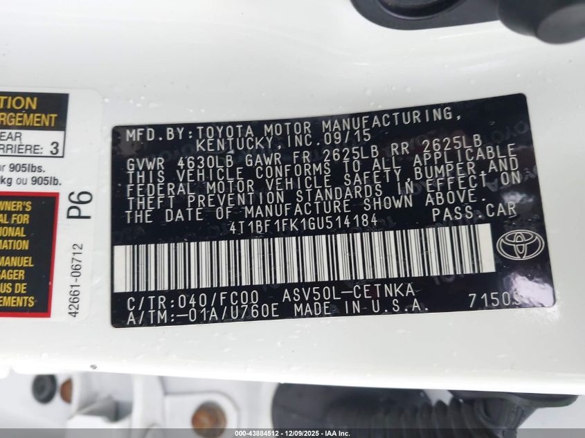 2016 TOYOTA CAMRY 2016 року Бензин, 2.5, Передній привід, vin - 4T1BF1FK1GU514184 з США
