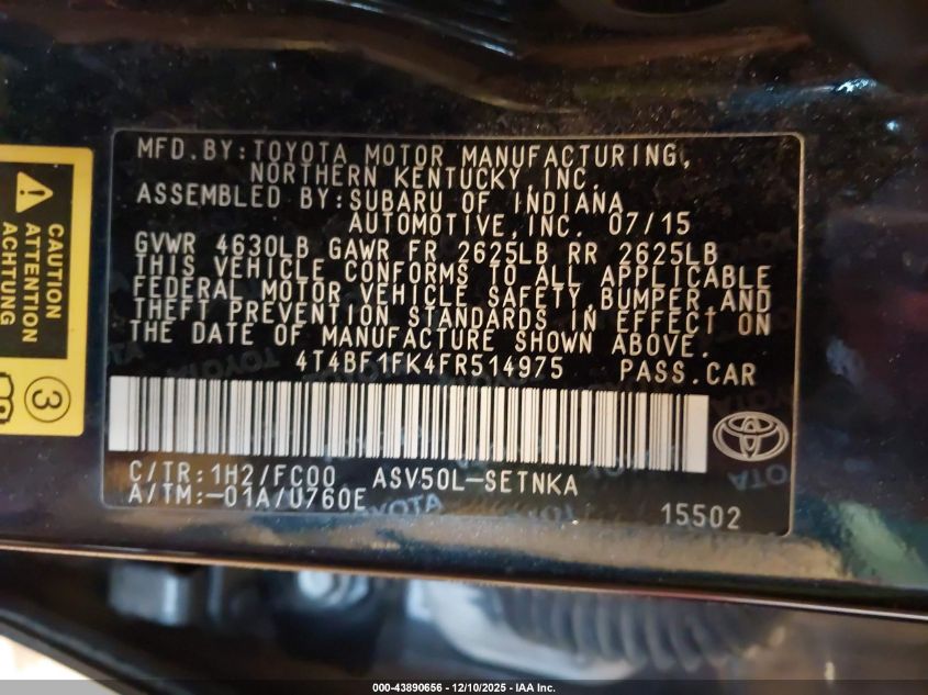 2015 TOYOTA CAMRY 2015 року Бензин, 2.5, Передній привід, vin - 4T4BF1FK4FR514975 з США