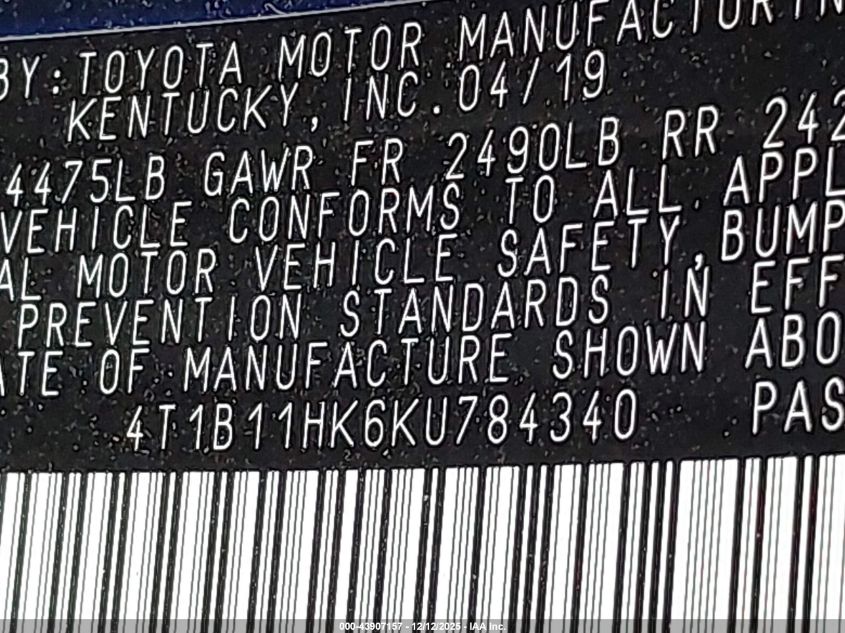 2019 TOYOTA CAMRY 2019 року Бензин, 2.5, Передній привід, vin - 4T1B11HK6KU784340 з США