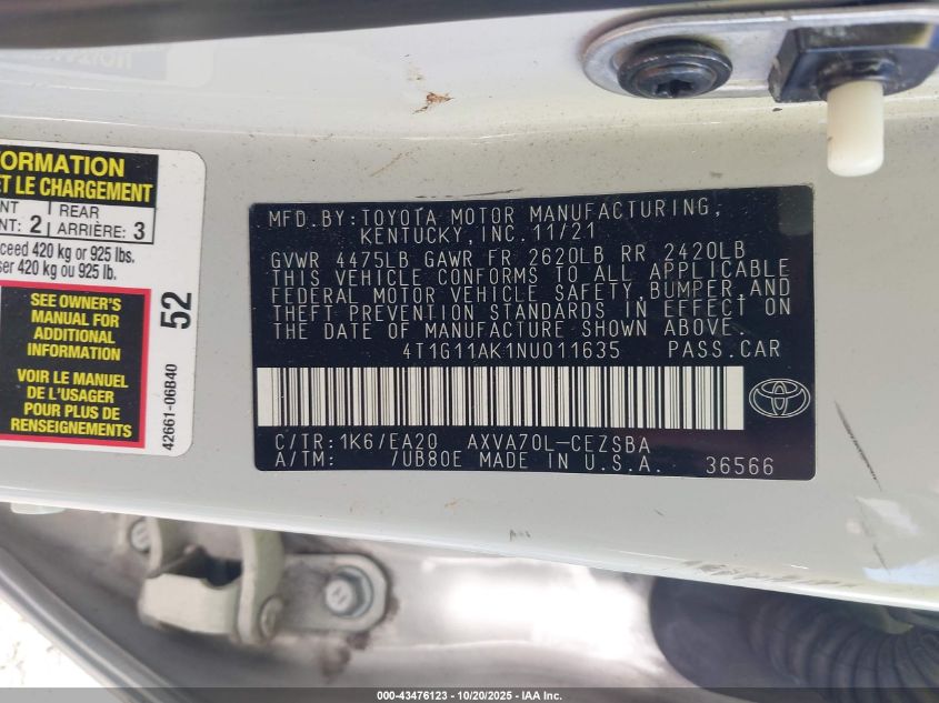 2022 TOYOTA CAMRY 2022 року Бензин, 2.5, Передній привід, vin - 4T1G11AK1NU011635 з США