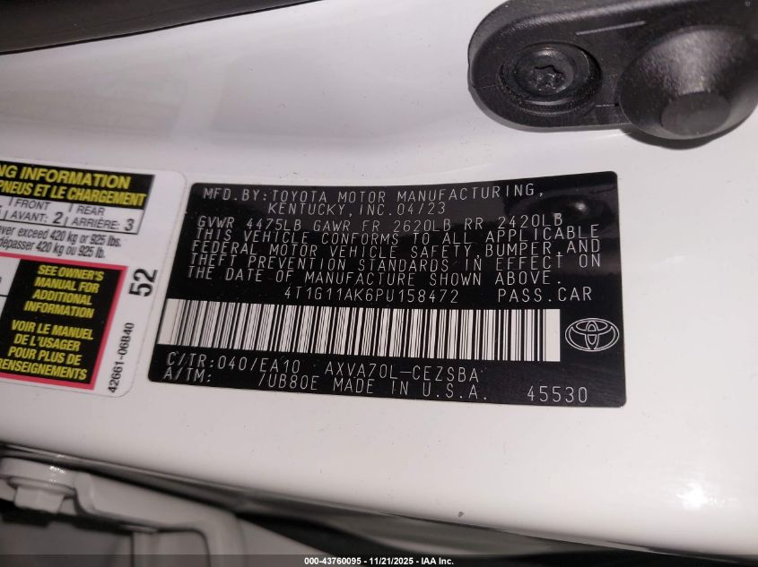 2023 TOYOTA CAMRY 2023 року Бензин, 2.5, Передній привід, vin - 4T1G11AK6PU158472 з США