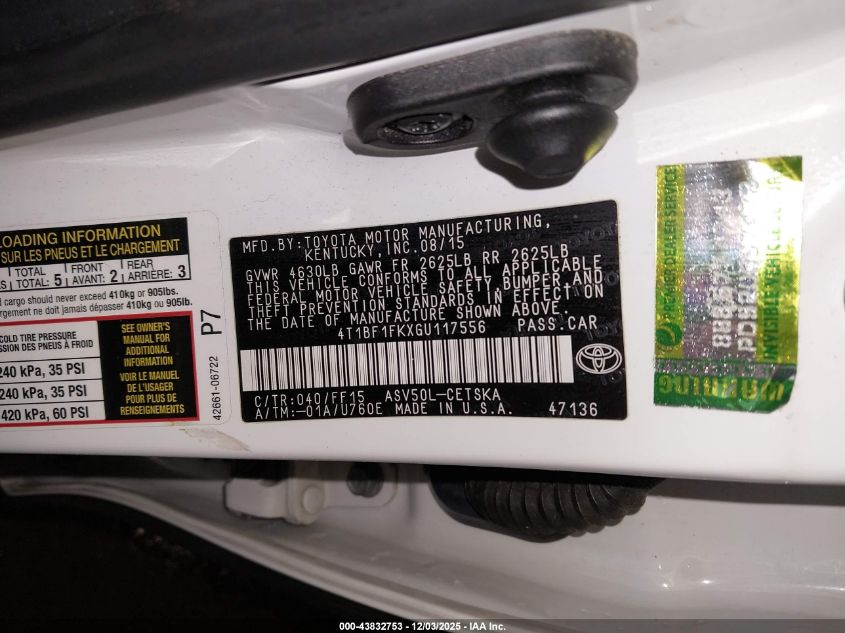 2016 TOYOTA CAMRY 2016 року Бензин, 2.5, Передній привід, vin - 4T1BF1FKXGU117556 з США