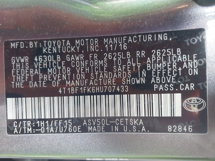 2017 TOYOTA CAMRY 2017 року Бензин, 2.5, Передній привід, vin - 4T1BF1FK6HU707433 з США
