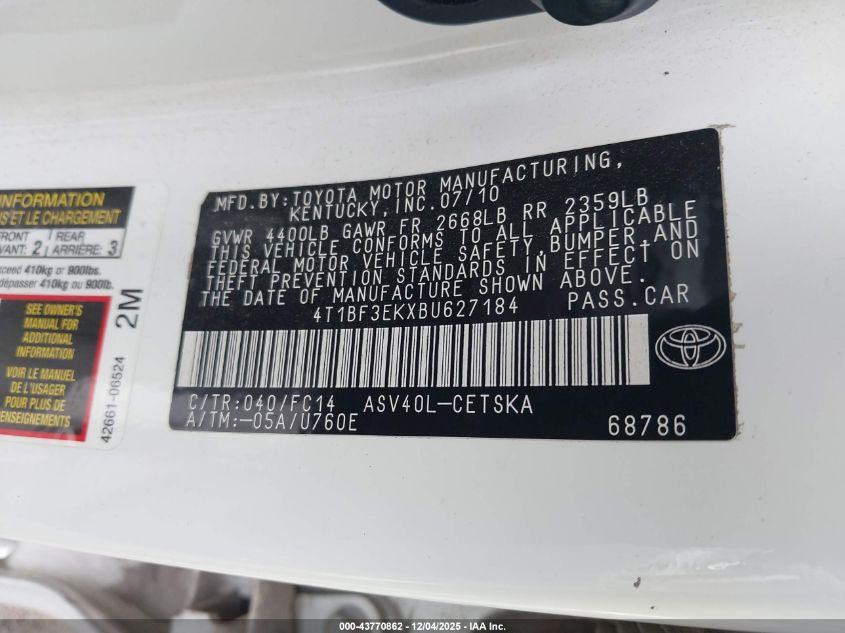 2011 TOYOTA CAMRY BASE