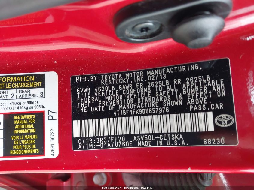 2013 TOYOTA CAMRY 2013 року Бензин, 2.5, Передній привід, vin - 4T1BF1FK9DU657976 з США