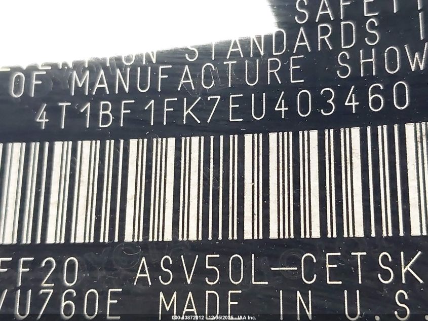 2014 TOYOTA CAMRY 2014 року Бензин, 2.5, Передній привід, vin - 4T1BF1FK7EU403460 з США