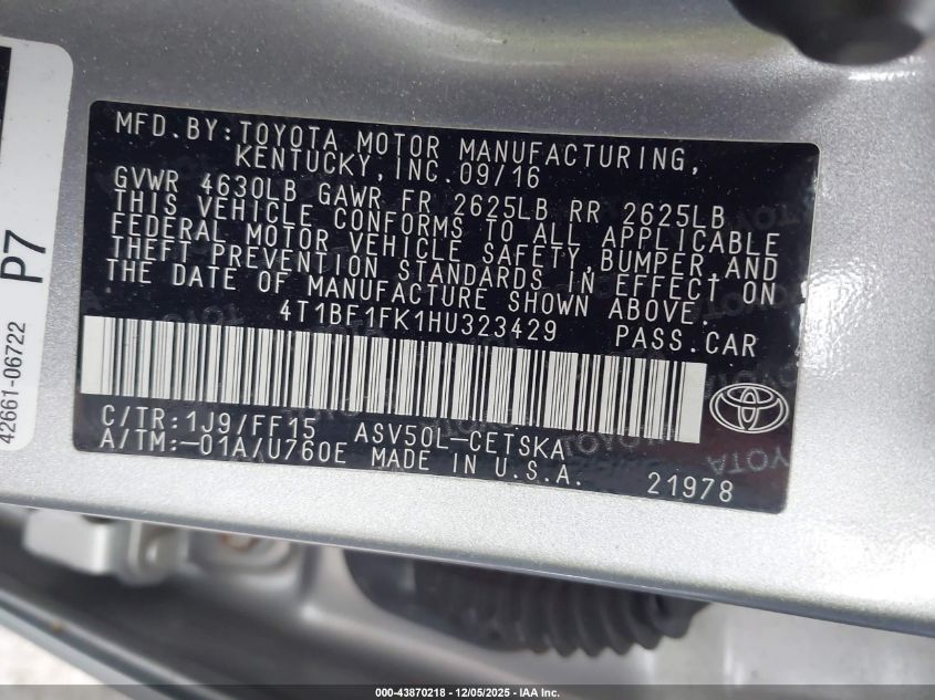 2017 TOYOTA CAMRY LE