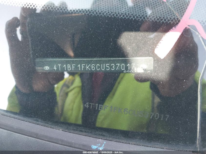 2012 TOYOTA CAMRY 2012 року Бензин, 2.5, Передній привід, vin - 4T1BF1FK6CU537017 з США