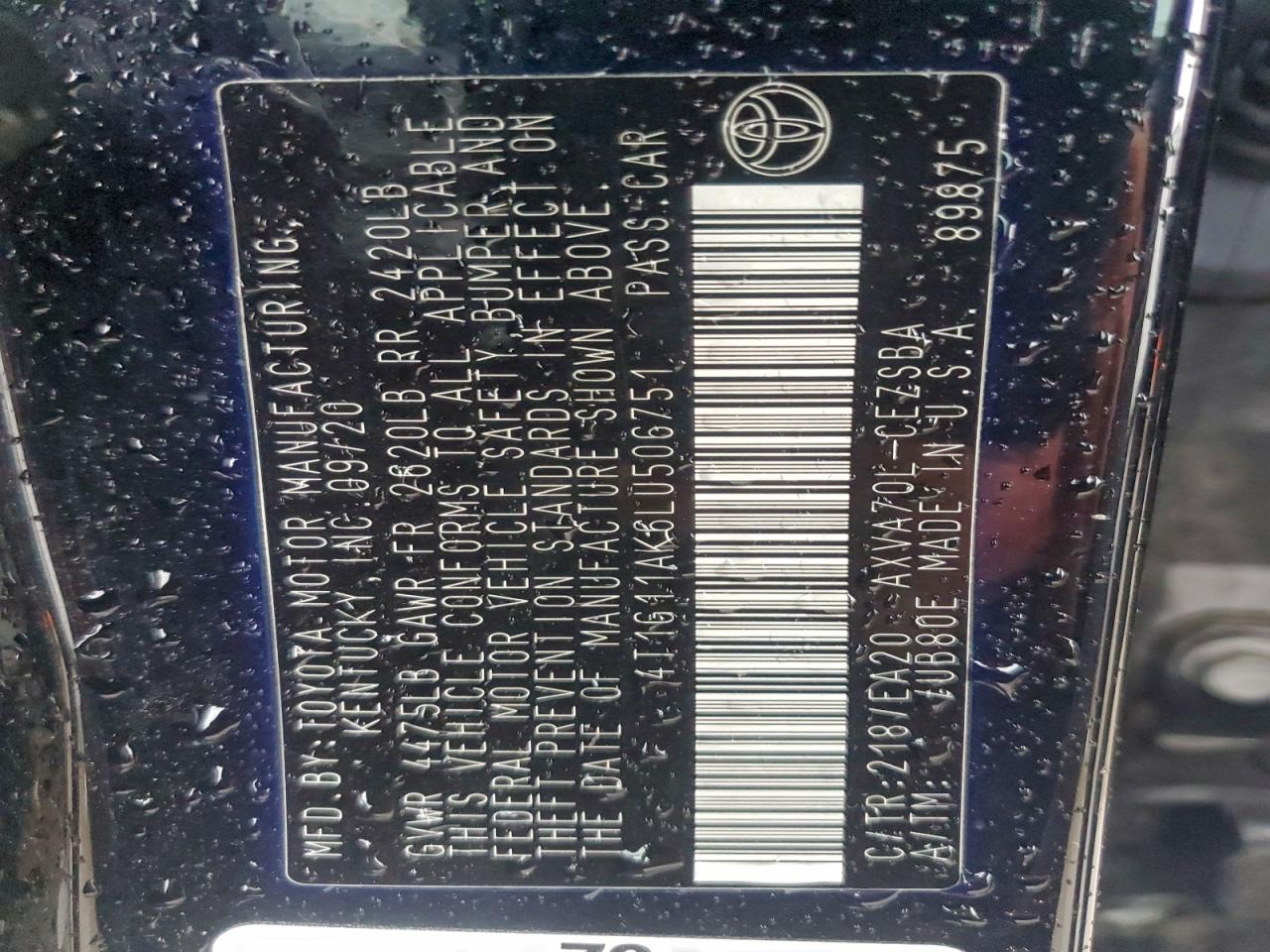 2020 TOYOTA CAMRY 2020 року Бензин, 2.5, , vin - 4T1G11AK6LU506751 з США