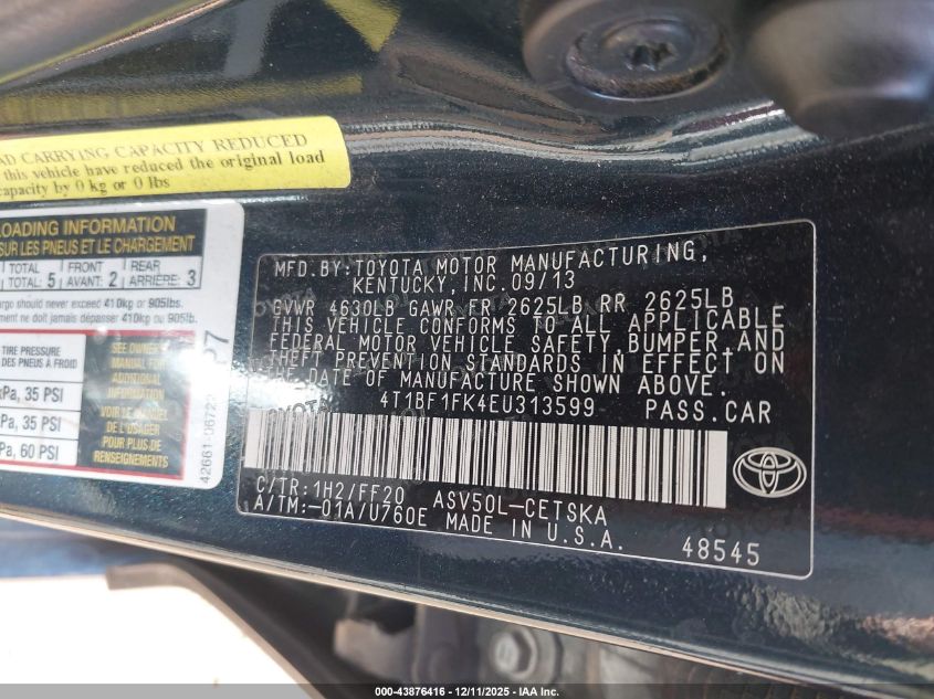 2014 TOYOTA CAMRY 2014 року Бензин, 2.5, Передній привід, vin - 4T1BF1FK4EU313599 з США