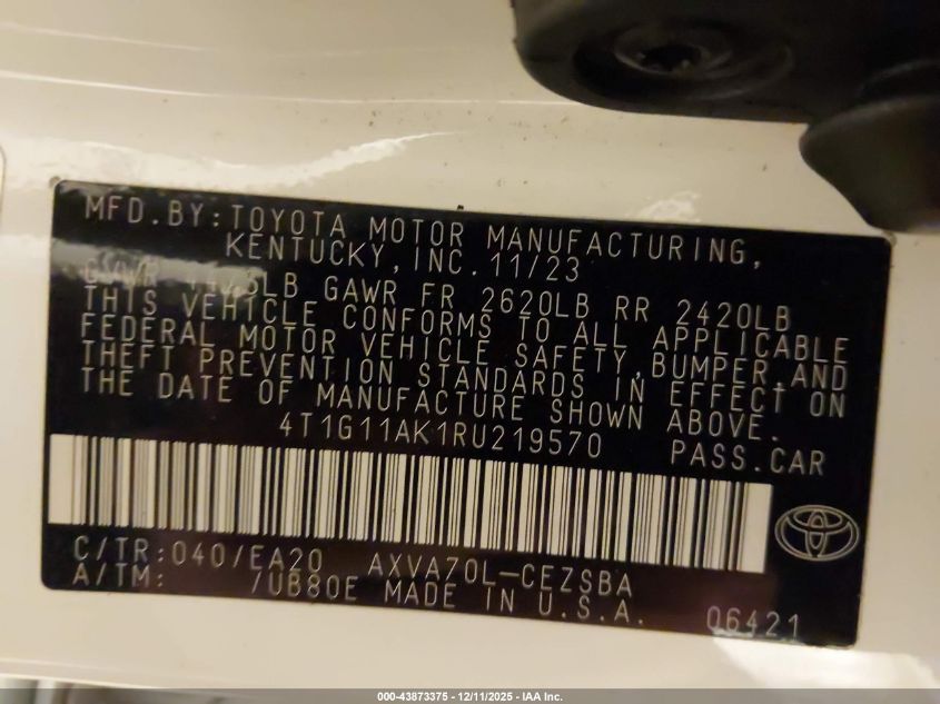 2024 TOYOTA CAMRY 2024 року Бензин, 2.5, Передній привід, vin - 4T1G11AK1RU219570 з США