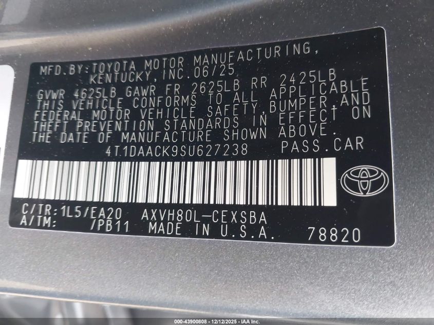 2025 TOYOTA CAMRY 2025 року Гібрид, 2.5, Передній привід, vin - 4T1DAACK9SU627238 з США