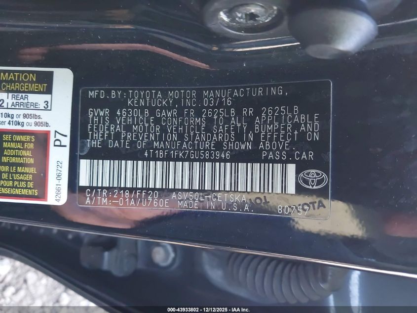 2016 TOYOTA CAMRY XSE