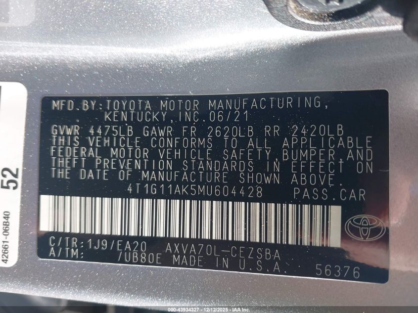 2021 TOYOTA CAMRY 2021 року Бензин, 2.5, Передній привід, vin - 4T1G11AK5MU604428 з США