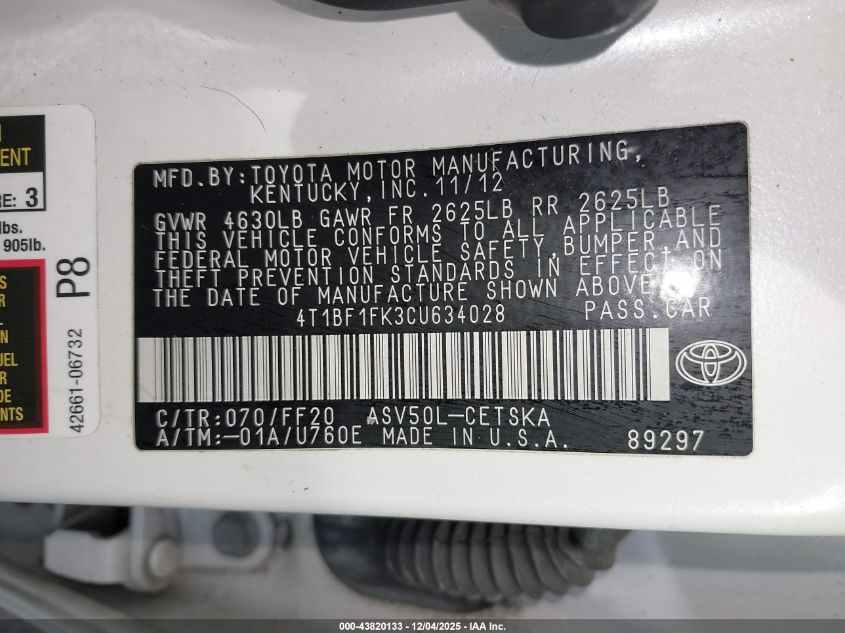 2012 TOYOTA CAMRY 2012 року Бензин, 2.5, Передній привід, vin - 4T1BF1FK3CU634028 з США