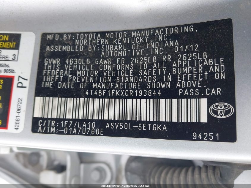 2012 TOYOTA CAMRY 2012 року Бензин, 2.5, Передній привід, vin - 4T4BF1FKXCR193844 з США
