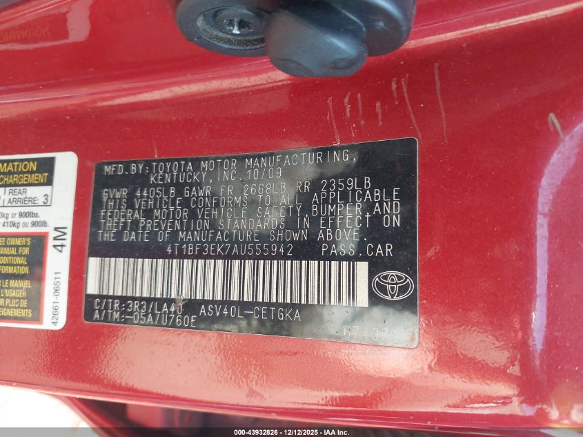 2010 TOYOTA CAMRY 2010 року Бензин, 2.5, Передній привід, vin - 4T1BF3EK7AU555942 з США
