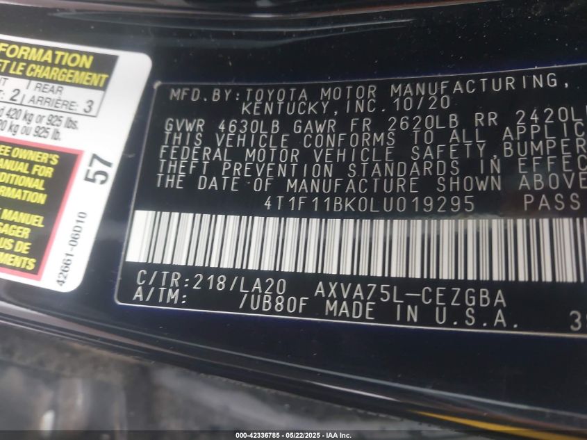 2020 TOYOTA CAMRY 2020 року Бензин, 2.5, Повний привід, vin - 4T1F11BK0LU019295 з США