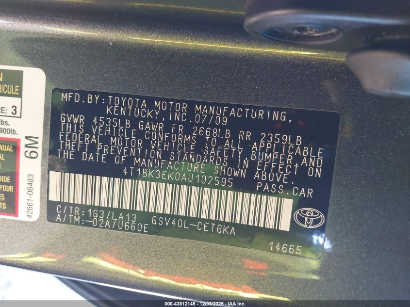 2010 TOYOTA CAMRY 2010 року Бензин, 3.5, Передній привід, vin - 4T1BK3EK0AU102595 з США