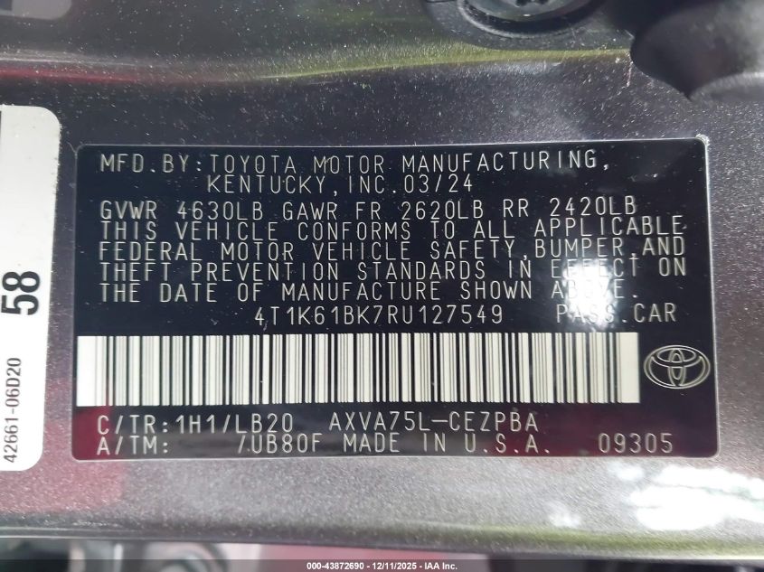 2024 TOYOTA CAMRY 2024 року Бензин, 2.5, Повний привід, vin - 4T1K61BK7RU127549 з США