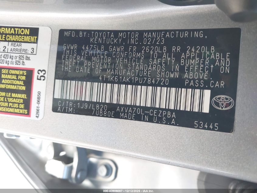 2023 TOYOTA CAMRY 2023 року Бензин, 2.5, Передній привід, vin - 4T1K61AK1PU784720 з США